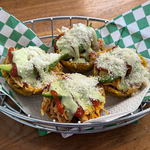 Cup-shaped piece of green plantain, fried. You can choose three different types according to your taste.