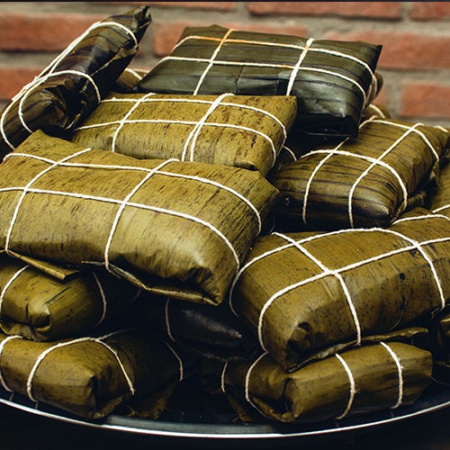Traditional hallaca made with corn dough filled with a mixture of beef, pork, or chicken.